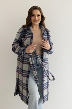 Рубашка женская демисезонная 24107 (синий/клетка)