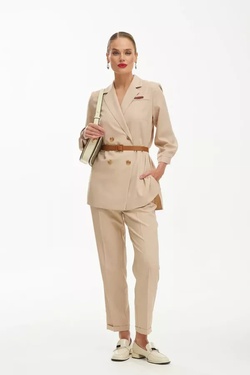 Летний желтый костюм из хлопка с жилетом и брюками Romgil