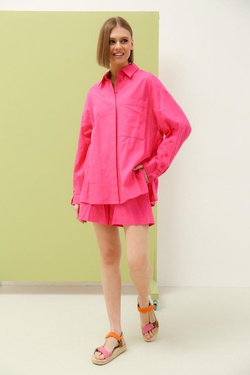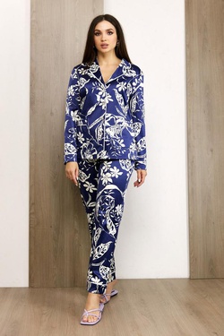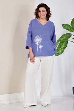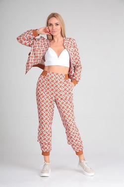 Летний костюм из вискозы блузка и брюки яркий оттенок Панда