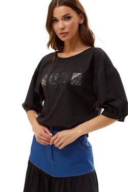 Блуза из атласа с объемными рукавами и воротником-стойкой Ramonk