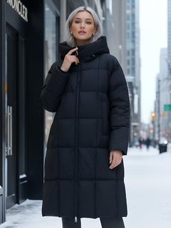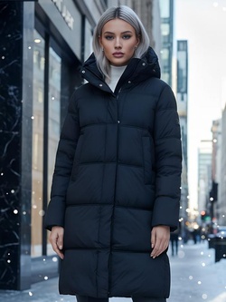 Пальто зимнее утепленное с капюшоном женское черного цвета 7741Ch