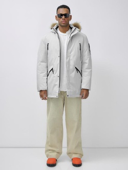 Парка мужская зимняя удлиненная с мехом светло-серого цвета 602_1SS