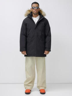 Парка мужская зимняя удлиненная с мехом черного цвета 999Ch