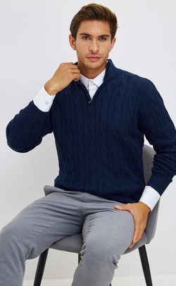 Джемпер мужской с воротником на молнии P221-15-235 тёмно-синий