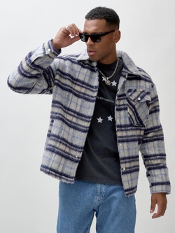 Куртка рубашка шерстяная в клетку мужская демисезонная темно-синего цвета 58565TS