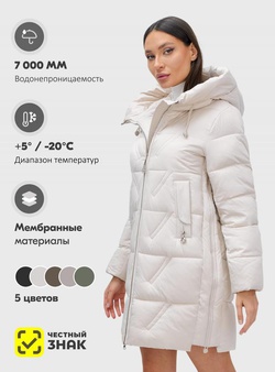 Куртка зимняя женская классическая с капюшоном бежевого цвета 7671B