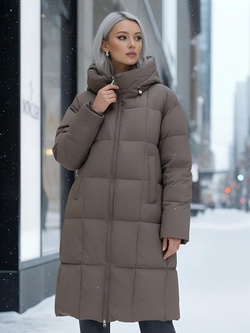 Пальто зимнее утепленное с капюшоном женское светло-коричневого цвета 7748SK
