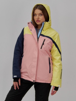 Горнолыжная куртка женская зимняя желтого цвета 027J