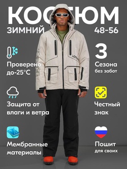 Горнолыжный костюм мужской зимний бежевого цвета 394B
