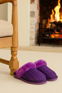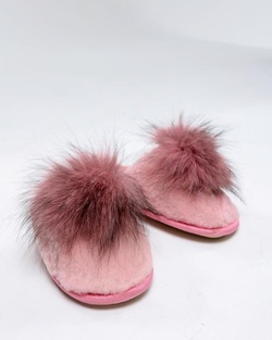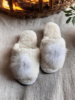 Тапочки из овчины с помпоном разного цвета/молочный/закрытый