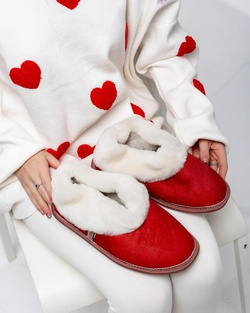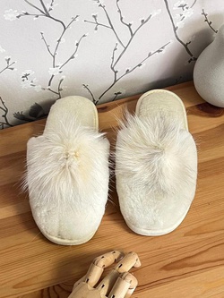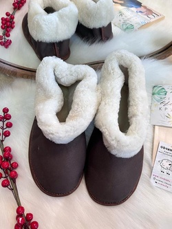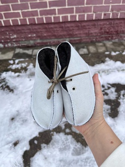 Тапочки из овчины с помпоном разного цвета/белые/открытый нос