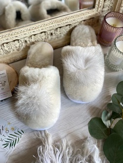 Тапочки из овчины с помпоном/закрытые/кремовый