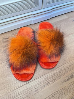 Тапочки из овчины с помпоном/открытые/оранжевый/41