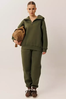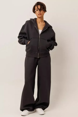Костюм с укороченным зип худи и брюками, Самый тренд этого сезона в коллекции от GO — комфортный костюм! Укороченное худи на молнии вместе с широкими брюками — лучшее решение для Вас!