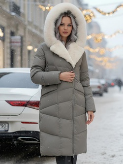 Пальто зимнее утепленное с мехом и капюшоном тренд коричневого цвета 7629K