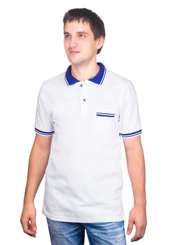 G134-55 (белый c cиним) Рубашка поло мужская короткий рукав