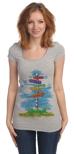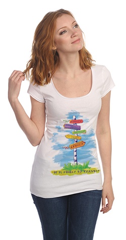 Футболка женская белая длинная с рисунком Я люблю путешествовать