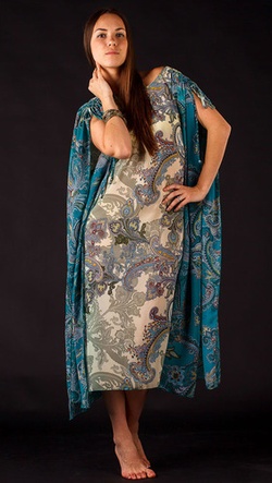 Описание: Туника-атлас набивной, брюки-атлас однотонный.