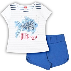 CSK 9831 Комплект для девочки (футболка, шорты), белый-темно-синий