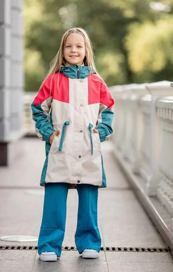 530-23в Парка-плащ для девочки "Френсис", колор блок коралл