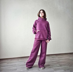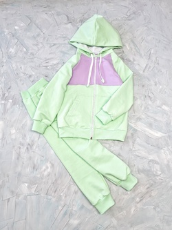 Костюм 2 предмета.КОФТА С КАПЮШОНОМ-СТОЙКОЙ, С МОЛНИЕЙ, ШТАНЫ С ЛАМПАСАМИ, КОСТЮМ С НАЧЁСОМ