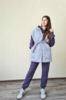Жилет с поясом утепленный, карманы прорезные. Ткань верха дюспо, подклад ПЭ, утеплитель синтепон