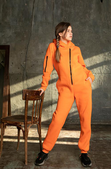Приталенный Комбинезон из футера трёхнитки с начёсом с косой молнией