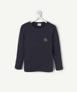 NAVY BLUE T-SHIRT WITH A SEQUINNED MESSAGE