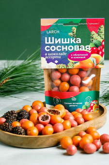 Шишка сосновая в шоколаде Ассорти Облепиха и Клюква / дой пак / 60 г / LARCH