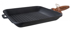 Сковорода-гриль чугунная круглая 24см деревянная ручка, XG60W