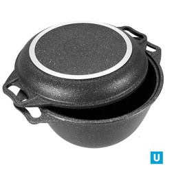 Казан с крышкой-сковородой 4л, АП (темный мрамор)