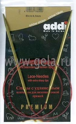 СПИЦЫ 80 СМ 3.75-5 ADDI ПОЗОЛОЧЕННЫЕ КРУГОВЫЕ С УДЛИНЕННЫМ КОНЧИКОМ ДЛЯ ТОНКОЙ ПРЯЖИ