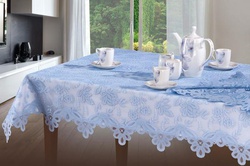 Скатерть арт. 515 В, NIEBO (Небо), прямоугольная, 130 см х 170 см, голубая тюлевая С ПОДЛОЖКОЙ