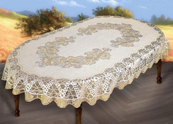 Скатерть арт. 230411/140/3, овальная, размеры 140 см х 240 см, цвет кремово-золотистый