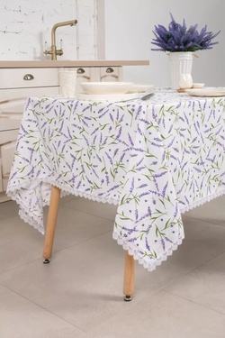 Скатерть с кружевом полулен 031 Лаванда (белый) (вид 2)