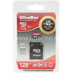 Карта памяти MicroSD 128GB OltraMax К10 (с адаптером) UHS-1 Elite 45 MB/s