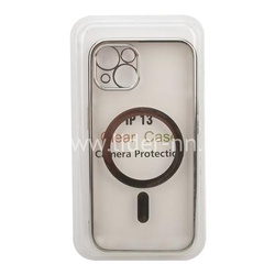 Задняя панель для iPhone 13 6.1" Силикон с MagSafe (блистер) прозрачная/чёрная