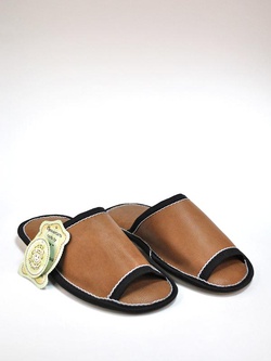 Арт 412 - Тапочки из экомеха открытые светло-коричневые