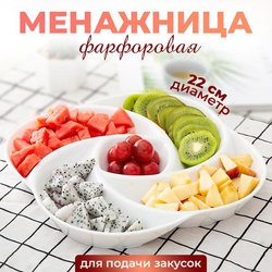 Менажница 5-ти секционная белая, форма цветок 22*3см, фарфор