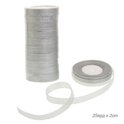 Лента органза декоративная 25ярд х 2см 10 штук набор / S631 /уп 60/серебро