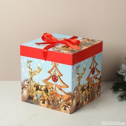 Коробка подарочная 22x22x22 см складная / 117-L /уп 12/480/Новый год