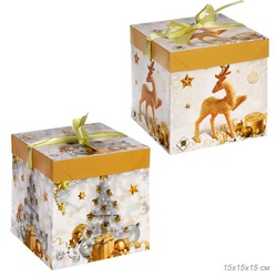 Коробка подарочная 15x15x15 см складная / 120-M /уп 12/840/Новый год