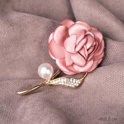 Брошь Цветок розовый 6,5 см / 3231 /уп 36/ с жемчугом