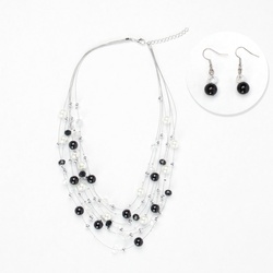 Колье многослойное и серьги / AILI-3 / черно-белое / 715465