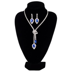 Колье со стразами и серьги гвоздики 4,5 см / 7014 /уп 12/ синий / серебро / 641484