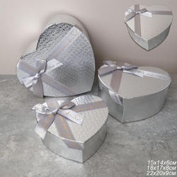 Коробка подарочная Сердце 3 штуки 22х20х9 см / 3405-03 /уп 36/серебро