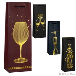 Пакет подарочный 12х35х9 Новый год / 435 /уп 12/960/под бутылку микс