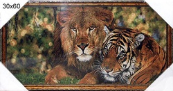 Картина гобелен 30х60 Лев и тигр / D051 / 2808C-107B1 /