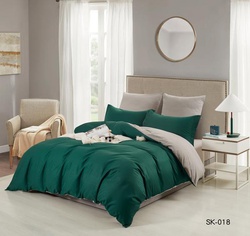 КПБ "KARTEKS" сатин однотонный комбинированный, арт. SK004, р. 2-спальный, (подод.180х215см-1шт на молнии, прост.220х240см-1шт, нав.70х70см-2шт, 50х70+5см-2шт с запахом) состав 100% хлопок, плотность 145 гр. м2, упаковка ПВХ сумка с подарочным пакетом.