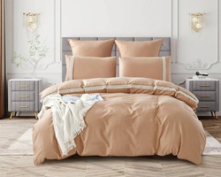 Комплект постельного белья "KARTEKS" сатин однотонный с кружевом, SOG-10, р. евро (подод. 200х220-1 шт., прост. 240х260-1шт., нав. 50х70+5см-2шт.,70х70-2шт.), состав 100% хлопок , плотность 145 гр. м2, упаковка коробка с подарочным пакетом.